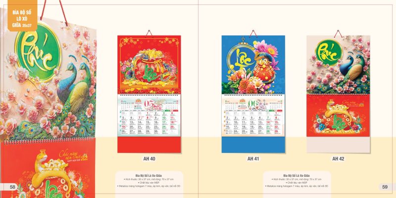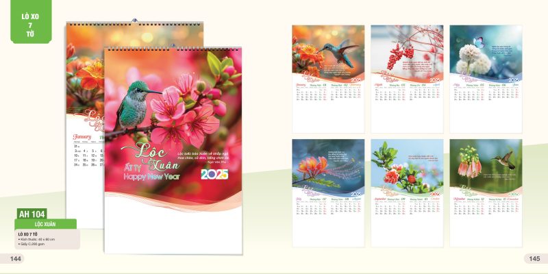 • Lịch treo tường: Thiết kế 5 tờ, 7 tờ hoặc 13 tờ, tiện dụng và dễ nhìn.