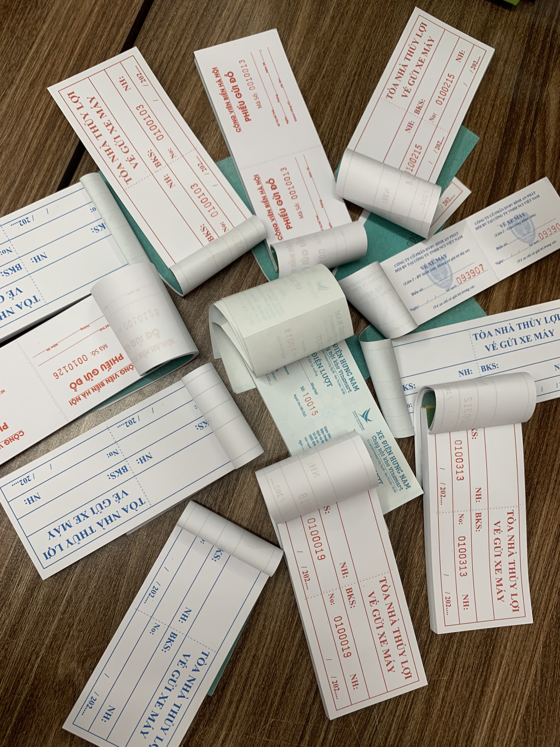 - Kích thước in vé giữ xe 2 liên là 16 x 5.8cm